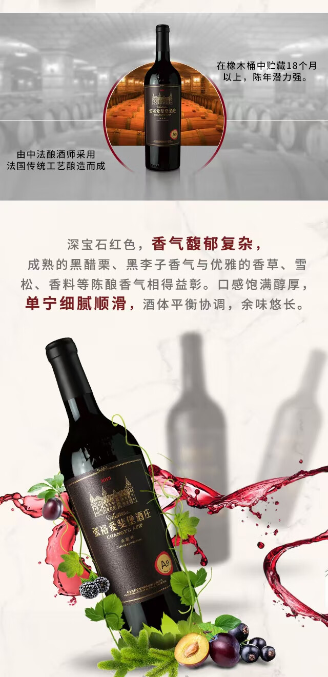 张裕爱斐堡A9赤霞珠干红葡萄酒 750ml/瓶