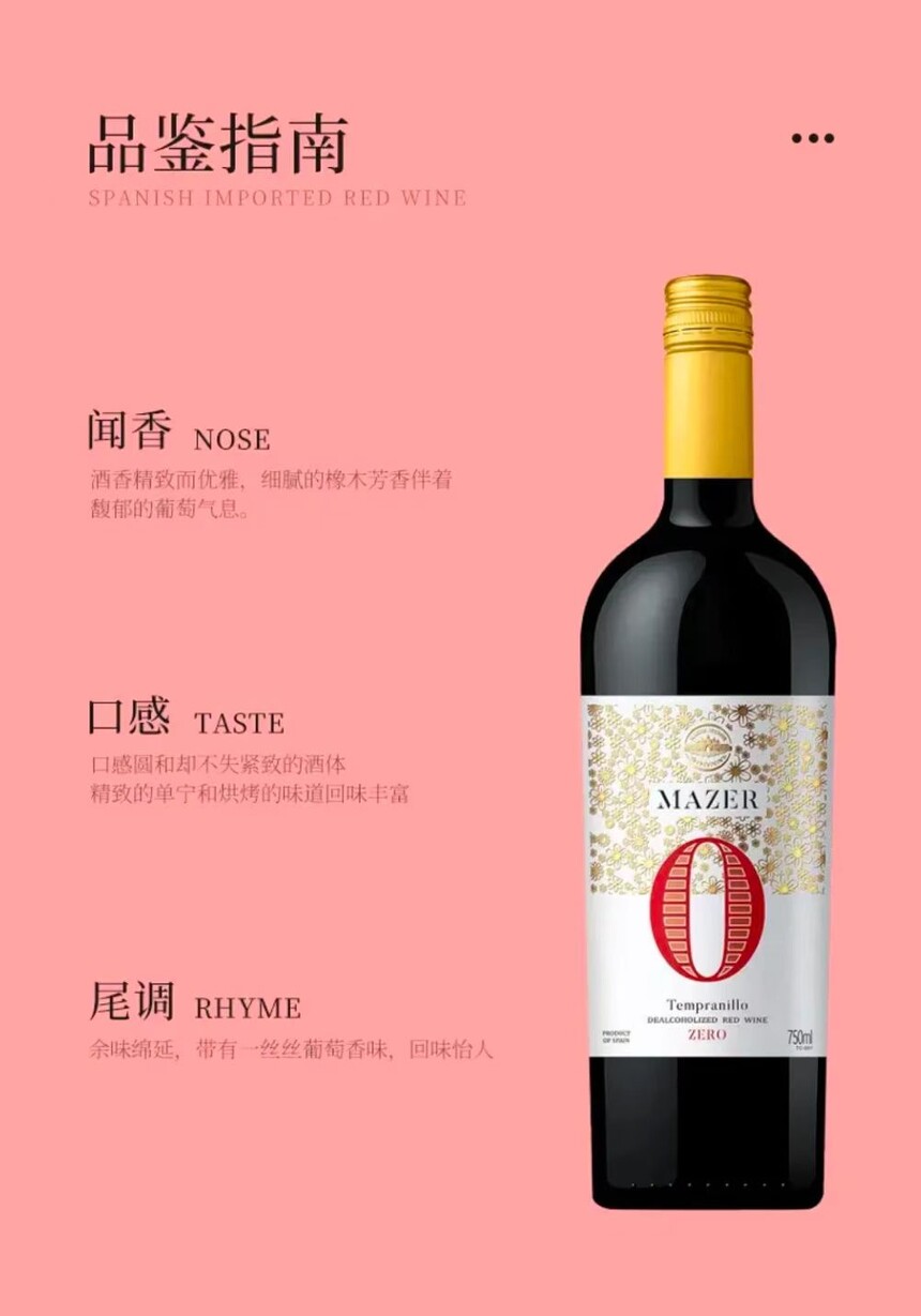 西班牙玛泽尔脱醇0度红葡萄酒(01红)750ml/瓶