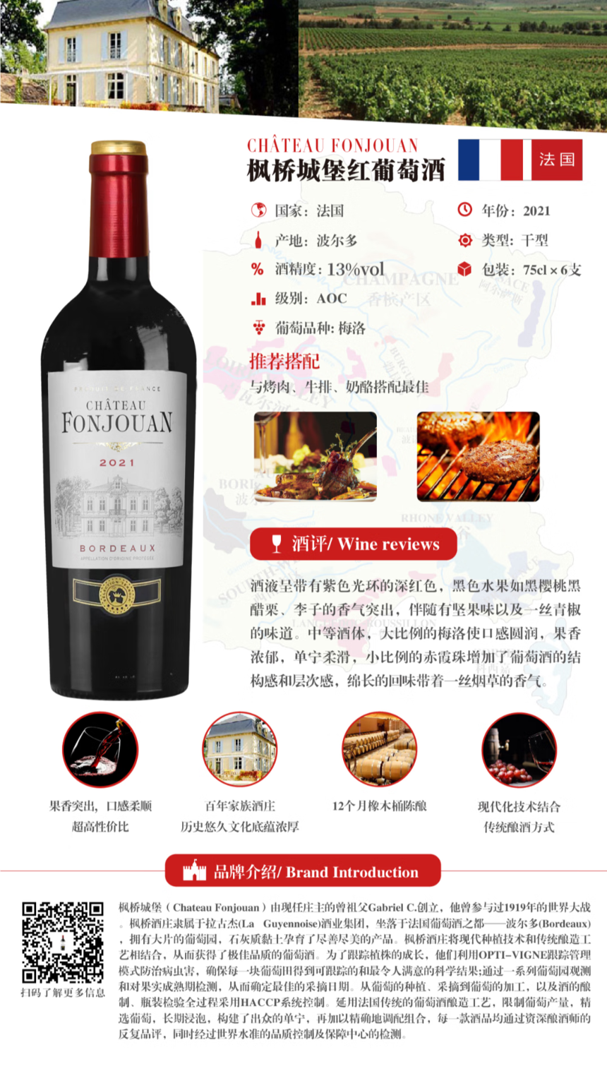 法国瑞莎城堡干白干红葡萄酒 750ml/瓶