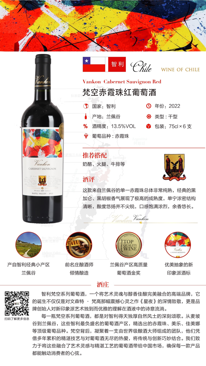 智利梵空赤霞珠干红葡萄酒 750ml/瓶