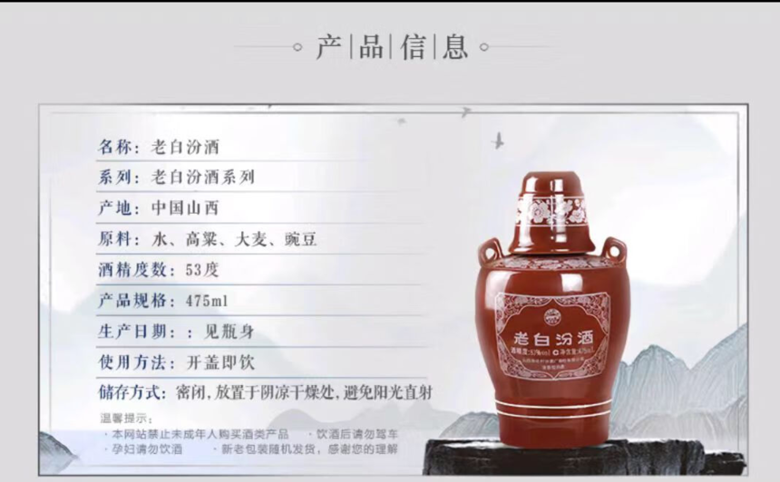 汾酒 10年老白汾53度 475ml清香型白酒/瓶