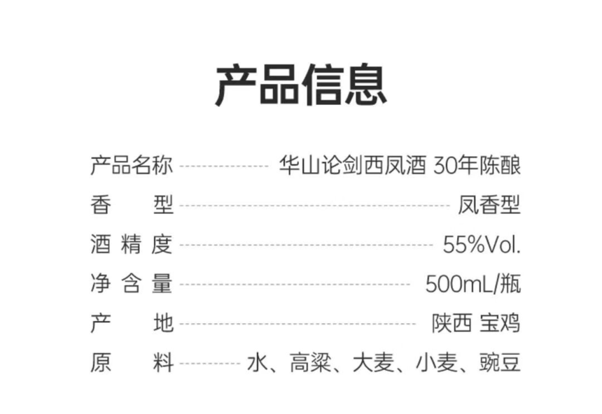 西凤酒华山论剑30 55度 陈酿凤香型 500ml 勇智敏仁高度白酒