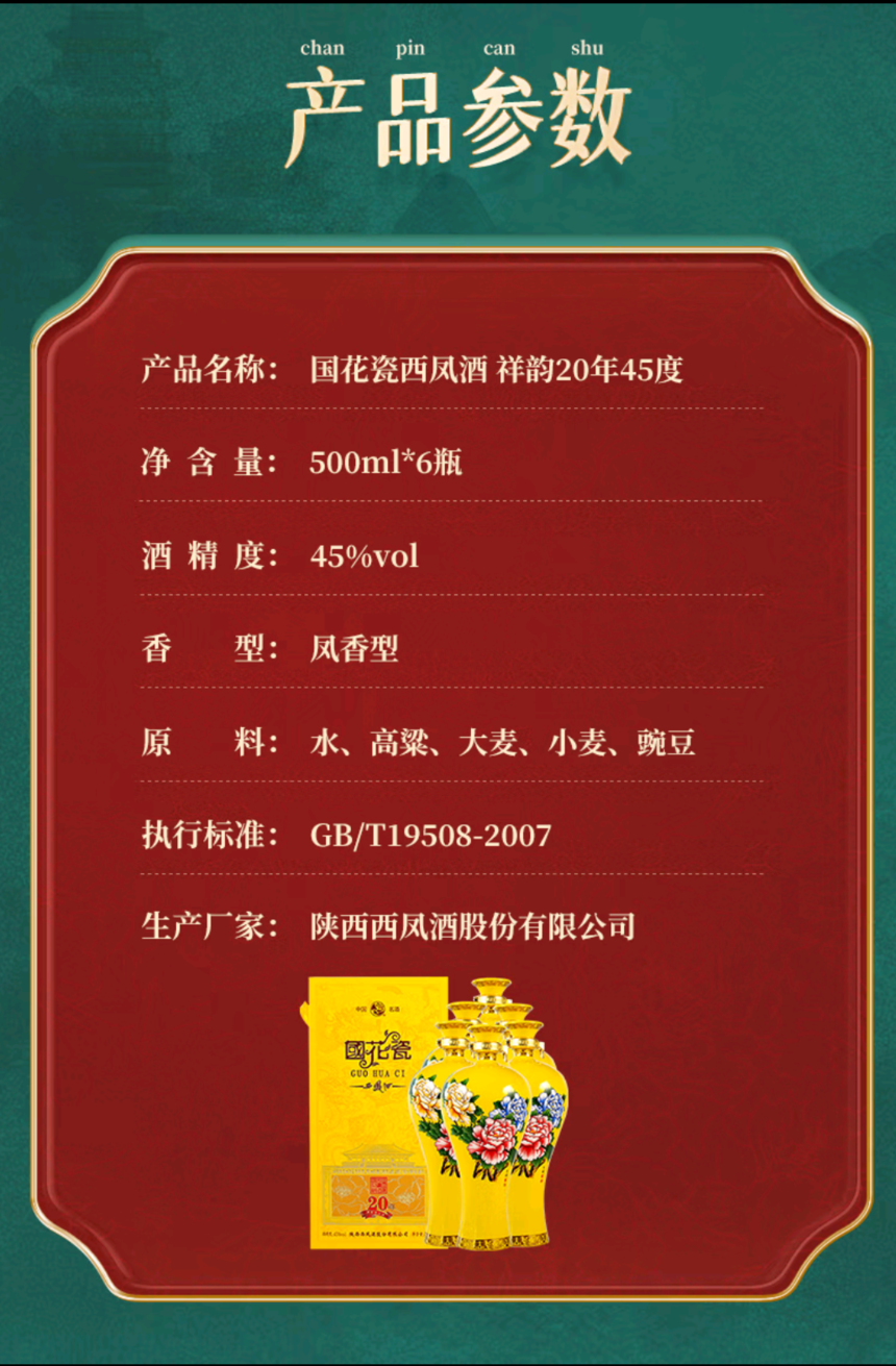 西凤国花瓷20年45度 500ml 凤香型白酒