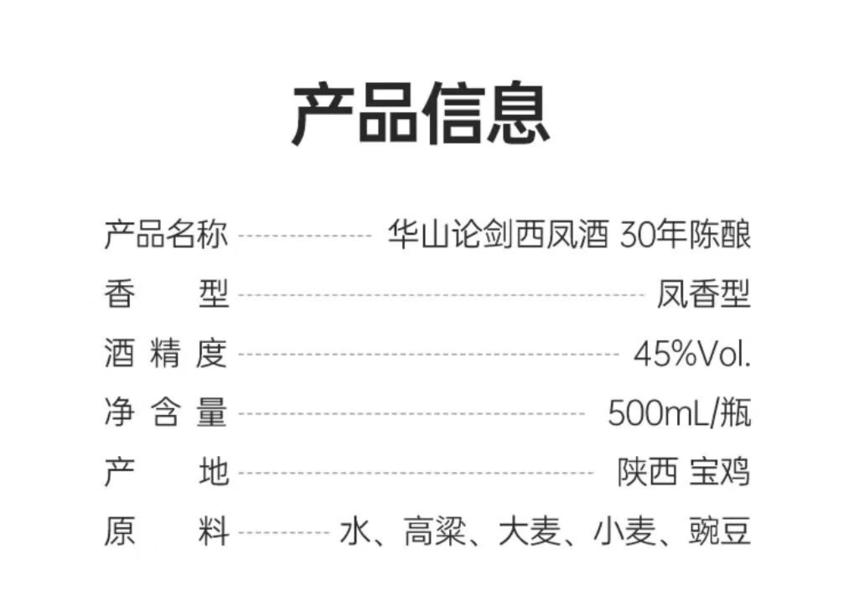 西凤华山论剑30年45度 500ml/瓶 凤香型白酒