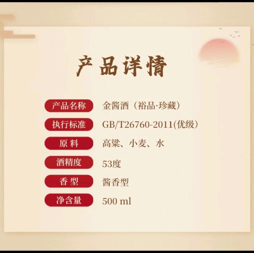 金酱裕品珍藏53度 酱香型白酒500ml/瓶