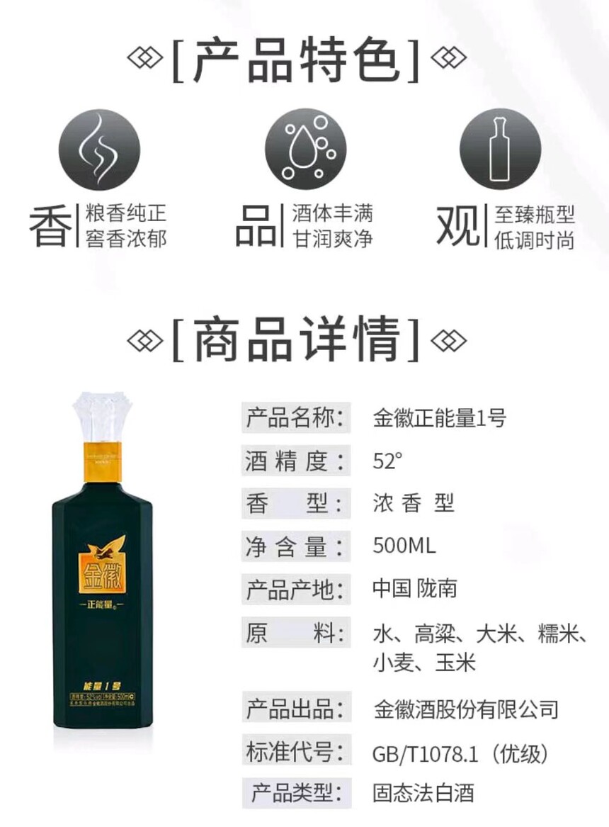 金徽酒 正能量1号52度500ml/瓶