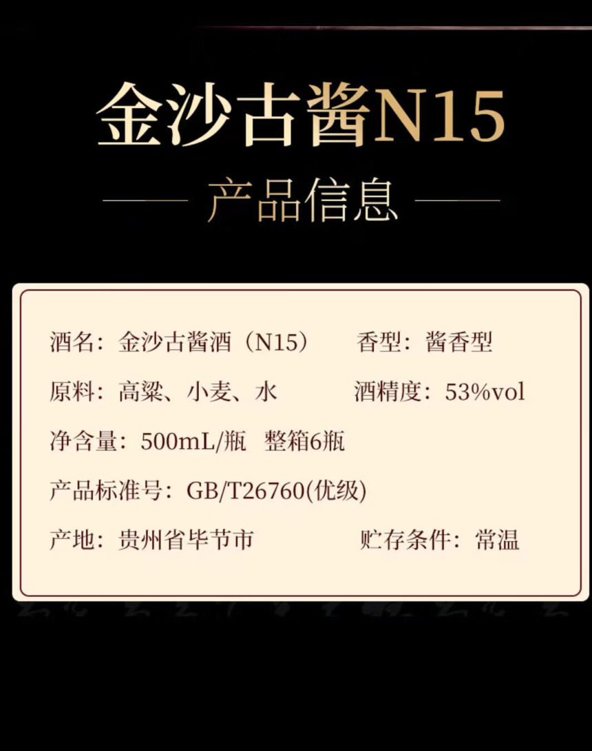 金沙古酱N15 53度酱香型白酒500ml/瓶