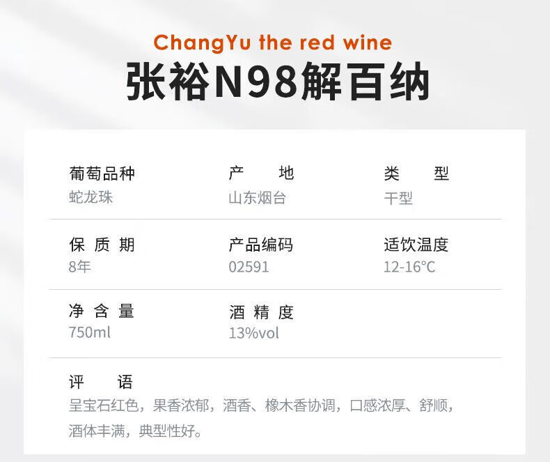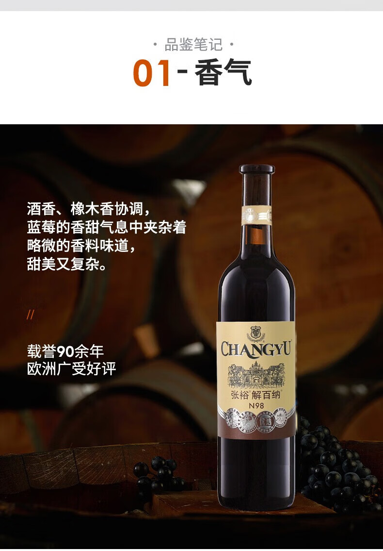 张裕 解百纳N98优选级红葡萄酒 750ml/瓶
