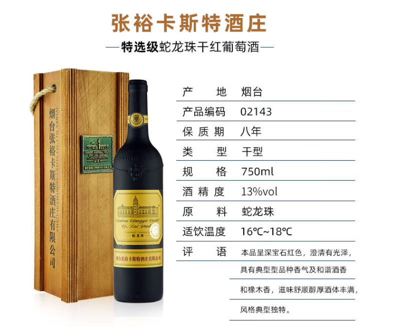 张裕 卡斯特蛇龙珠干红葡萄酒 750ml/瓶